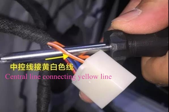 14. Kết nối phích cắm mở khóa xe nguyên bản với ổ cắm bộ chuyển đổi ba chiều do công ty chúng tôi cung cấp. Phích cắm ở đầu kia của công ty chúng tôi được lắp vào vị trí khóa. Lắp lỗ vào cổng sau đã tháo và cài đặt nút cổng sau của chúng tôi.