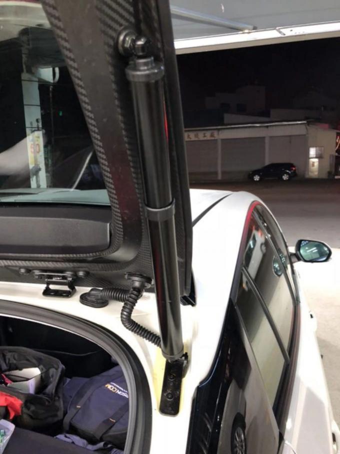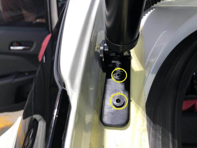 4. Breaking một lỗ nhỏ trong xe hơi ban đầu ống thổi , các strut dòng đi từ lỗ cắm cao su để tấm bìa của cánh cửa đuôi.
